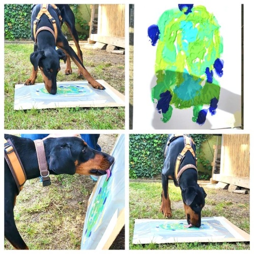 Hier sind einige Beispiel Bilder die Maike`s Hund Elvis gemalt hat: