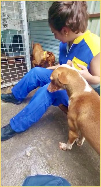 Der superliebe Schatz hatte so lange sehr viel Angst, lernt aber langsam das gestreichelt werden schön sein kann und es auch liebe Menschen gibt. Sein Vertrauen wächst, dank der wunderbaren vorsichtigen Annäherung von Naira und ihren Tierschutzkolleginnen in der Auffangstation, die das so gut machen. Das Festivo mit ihm zusammen ist tut ihm sehr gut, Festivo hat keinerlei Angst vor Menschen und Pepito lässt sich davon immer mehr ermutigen seine Angst vor Menschen zu verlieren. Er freut sich schon und hüpft wenn die Frauen sich Zeit nehmen und zu den Hunden in die Zwinger sitzen um bei ihnen zu sein.
