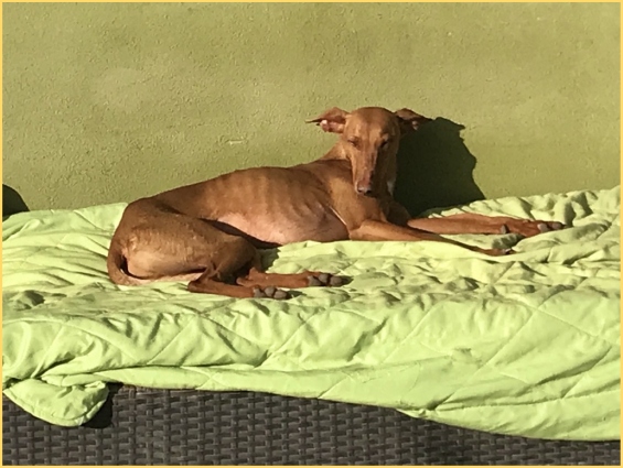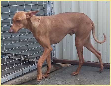 Pepito gehörte einem alkoholkranken Jäger, er kam beim Vulkanausbruch auf La Palma mit 7 anderen Podencos in die Auffangstation. Pepito war er völlig abgemagert, sein Körper war voller kleiner Narben und er hatte schreckliche Angst vor Menschen. Pepito hat in seinem bisherigen Leben sicher nichts Schönes erlebt. Seine Geschichte ist weiter unten zu lesen. Es ist bekannt das die Hunde der Jäger meist in irgendwelchen Schuppen, Baracken, Käfigen oder Löchern untergebracht sind, ausgehungert werden, da der Irrglaube besteht sie jagen besser wenn sie Hunger haben, die Hunde kommen nur raus zur Jagd und bleiben dann denn Rest des Jahres wieder in ihren Gefängnissen. Verletzungen, Brüche oder kranke Hunde werden nicht versorgt. Entweder sie überleben oder nicht. Pepito hat ein krummes Vorderbein, es muss gebrochen gewesen sein und ist unbehandelt zusammengewachsen.