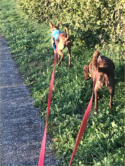 Mit der Zeit finden wir einen Weg wie das irgendwie möglich ist. Aber ehrlich, entspannt spazieren gehen ist anders......