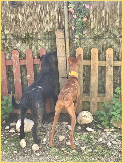 Eine grosse Herausforderung ist es durch Türen/Tore zu laufen. Pepito hat davor extreme Panik. Wahrscheinlich hat er die brutalen Methoden kennengelernt die angewandt werden um Hunde daran zu hindern aus ihrem "Gefängnis" zu flüchten.