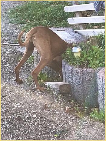 In meinem Garten toben sich nachts die Siebenschläfer aus, das war für Pepito zuviel, er flippte völlig aus und bellte ganz aufgeregt weil er sie jagen wollte. Dann war es soweit, ich musste die Hunde für die Nacht ins Haus holen. Naila und Pepito hatten beide grosse Angst davor ins Haus zu kommen, locken liessen sie sich mit den besten Häppchen nicht.