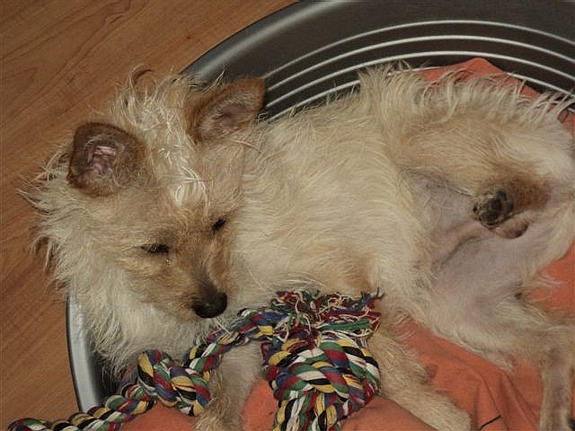 Yoshi erholt sich langsam. Er wird alle 1 - 2 Stunden mit Welpenmilch gefüttert und hat fast ununterbrochen Körperkontakt. So hat er Wärme und Geborgenheit, wenigstens von uns Menschen, wenn er schon keine Mutter mehr hat.