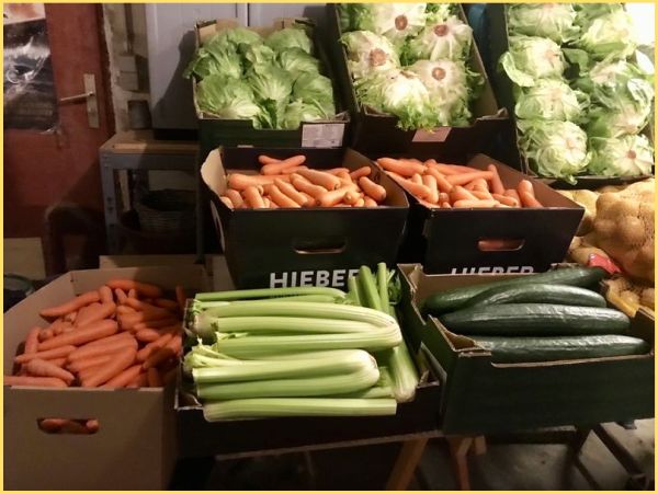 74 kg Karotten 95 kg Kartoffeln 23 kg Zucchini 5 kg Chicoree 20 kg Birnen 34 kg Äpfel 15 Salatgurken 10 Staudensellerie 31 Salate 2 Kürbisse