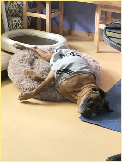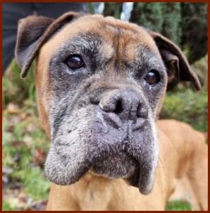 Boxerhündin, geb. 2010 - gestorben 13. Juni 2022 Alt, verbraucht und schwerkrank wurde Fleur herzlos im französischen Tierheim abgeliefert, bei Minus 8 Grad stand sie zitternd im Aussenzwinger ohne Schutz vor Kälte. |