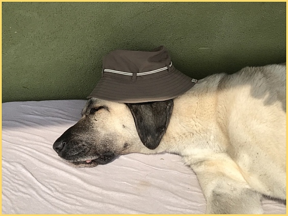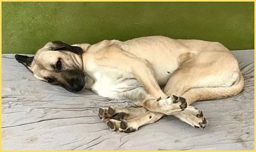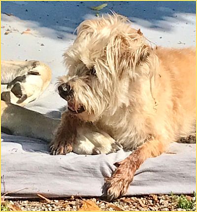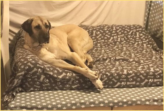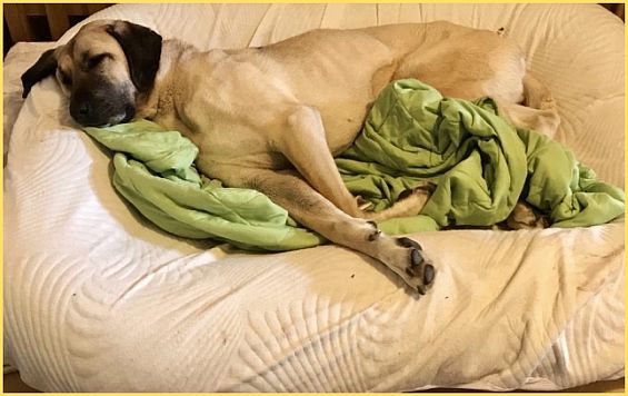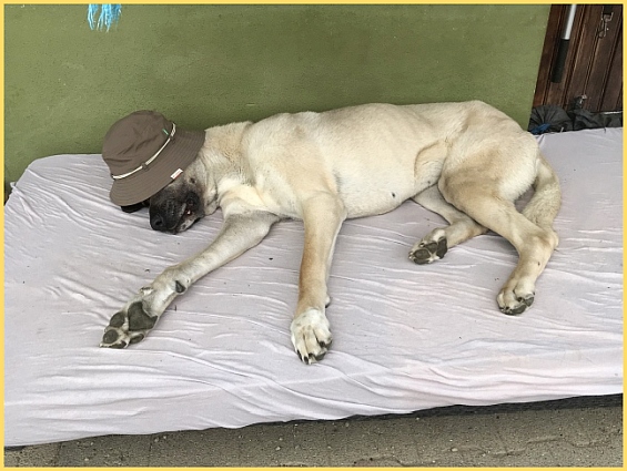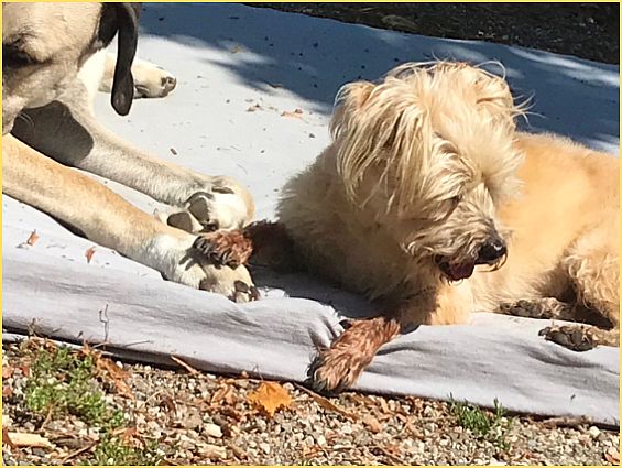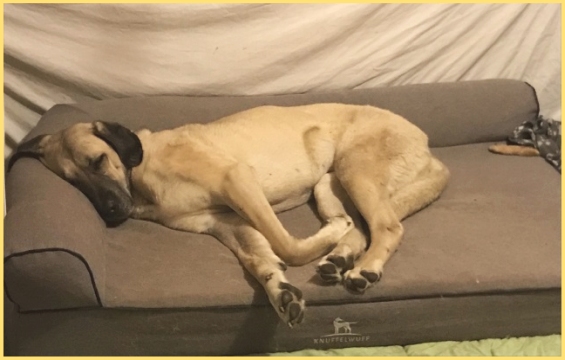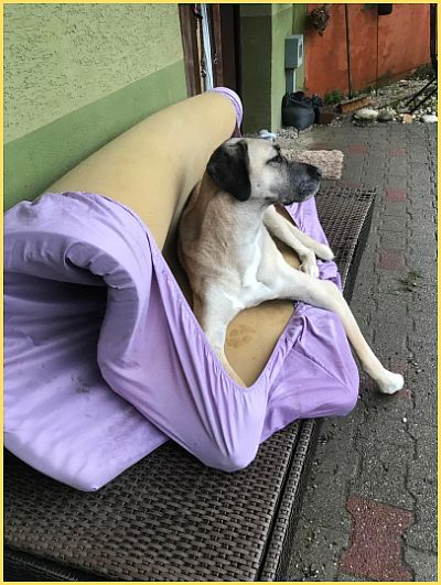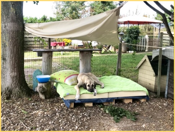 provisorisches Bett draussen hat Mali gleich entspannt angenommen