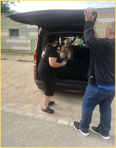 Martine vom Tierheim kam mit Mali zu mir nach Hause um sich alles anzuschauen und nochmal nachzufragen ob ich mir auch wirklich sicher bin !!!????!!!! Keine Frage das ich diesem ungestümen Kraftpaket ein Zuhause geben möchte.