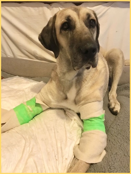 Mali bekommt immer wieder Umschläge mit Heilerde oder Retterspitz, manchmal sind ihre Gelenke geschwollen dann bringt es etwas Linderung
