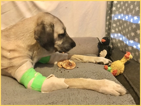 Mali wird seit sie bei mir ist behandelt, sie bekommt Schmerzmittel, Wickel/Umschläge, Nahrungsergänzungsmittel für Bänder/Sehnen und Gelenke, eine auf sie abgestimmte Ernährung, seit 2021 alle 2 - 3 Monate Behandlung von Irene Keil (Homöopathie, Kinesiologie, Akupressur, Akupunktur), 2023 Physiotherapie / Craniosacraltherapie bei Miriam Sartori seit April 2024 Therapie von Yvonne Müller (Lasertherapie, MatrixTherapie, Schmerztherapie, Stärkung auf psychischer/emotionaler Ebene)
