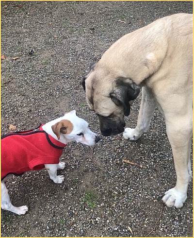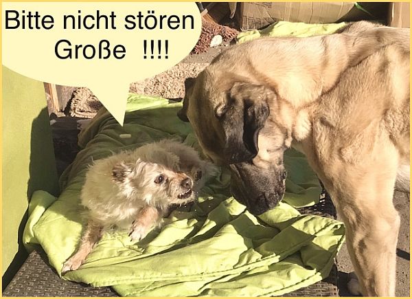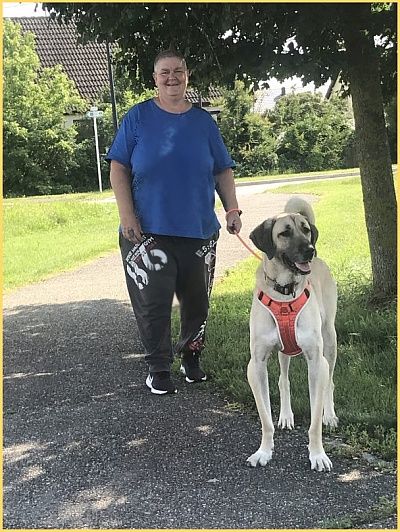- mit grossem Respekt vor dem Kangal-Wesen - habe ich mich vorbereitet und mich beraten lassen von Conny Pagel, Herdenschutzhund erfahren und die perfekte Ansprechperson für mich. Die richtige Dosis von Wissen, Erfahrung, Liebe und Humor damit waren Conny und ich sofort auf derselben Wellenlänge und wie sich zeigte, Mali auch :-) Denn Kangal typisch fordert Mali mich mit spielerischem Kräftemessen täglich heraus um zu prüfen ob ich ihr auch gewachsen bin :-) Mali macht das was für sie sinnvoll erscheint, mit unnötigen Kommandos gibt sie sich gar nicht ab und ignoriert gelassen was sie nicht hören will. So bin ich gar nicht erst in Versuchung ihr irgendetwas abzuverlangen oder beizubringen was eigentlich unwichtig ist, was ich ehrlich gesagt sehr entlastend finde :-)) Das Zusammenleben mit Hund bekommt eine neue Bedeutung - denn diese Hunde sind befähigt alleine zurecht zu kommen, auf ihre "Schäfchen" aufzupassen, sie zu verteidigen, sich selbst zu ernähren und allen Witterungen stand zu halten. Selbständig Entscheidungen zu treffen, Lösungen zu finden und ums Überleben zu kämpfen. Dieser Instinkt ist das Einzige was ich keinen Moment vergessen darf: Ressourcen verteidigen gehört zu ihrem Wesen ! Wenn ich das im Zusammenleben beachte gibt es keine Probleme damit.