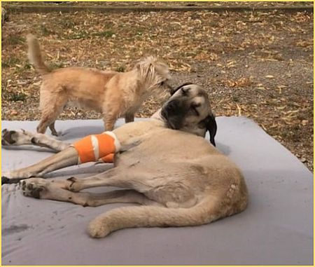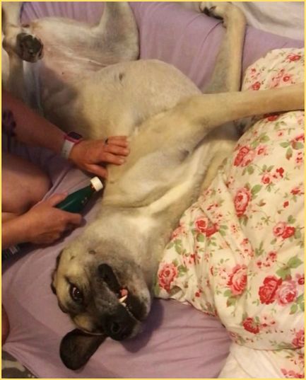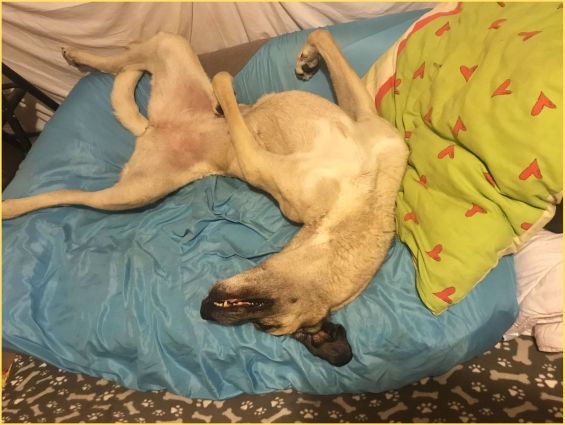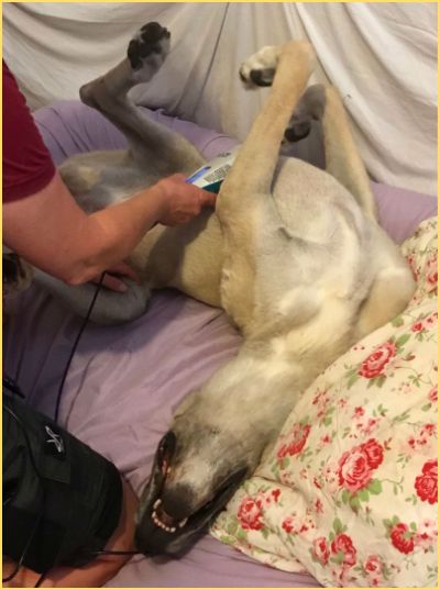 Mali hat ihre eigene Wohlfühlposition und lässt sich dabei ganz entspannt therapieren :-))