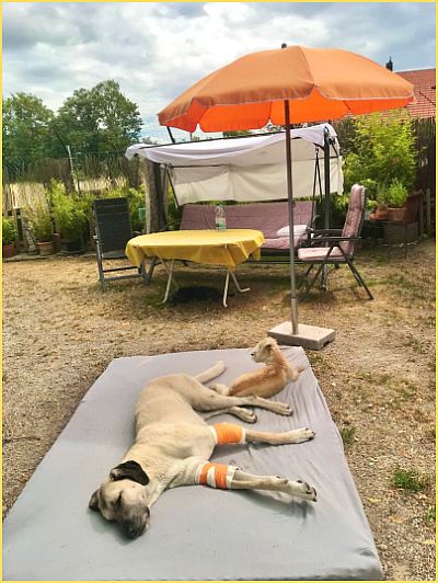 Mali`s Beschwerden beim Laufen, Aufstehen, Hinliegen werden immer deutlicher, an manchen Tagen ist es schwer sie so zu sehen doch Mali ist voller Lebensfreude man sieht wie sie jeden Tag die schönen Momente geniesst und sie möchte nicht eingeschränkt werden. Sie hatte sich letztes Jahr beim Kurve rennen eine schwere Zerrung geholt und musste 3 Wochen geschont werden, das war nicht zu ertragen, Mali wurde so traurig, da hätte sie sich fast aufgegeben. Sie muss sich frei bewegen und ihrer Freude Ausdruck geben können und wenn es durch spielen und rennen ist. Sie merkt inzwischen das sie mehr Pausen braucht und legt sich dann auch hin. Und ich sorge dafür das sie genügend Ruhezeiten hat. Ich bin für sie da und wir schauen jeden Tag auf`s Neue wie es ihr geht.