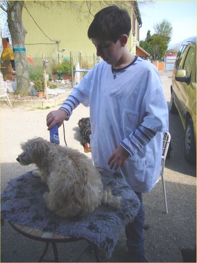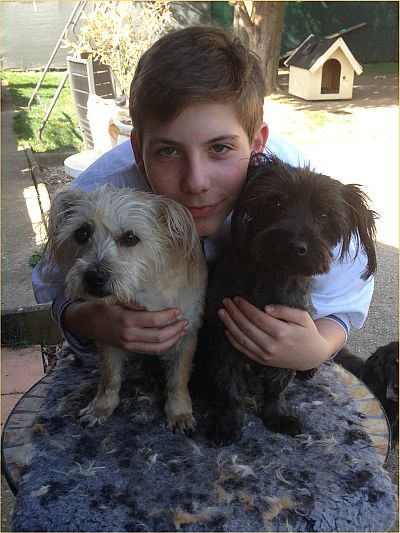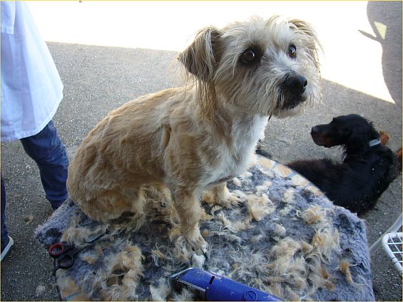 Karin hat immer gute Ideen, was wir am Mittwochnachmittag machen können. Zum Beispiel, als vor Kurzem die Sonne schien, haben wir zwei Hunden das Fell geschoren. Das hat richtig Spaß gemacht.
