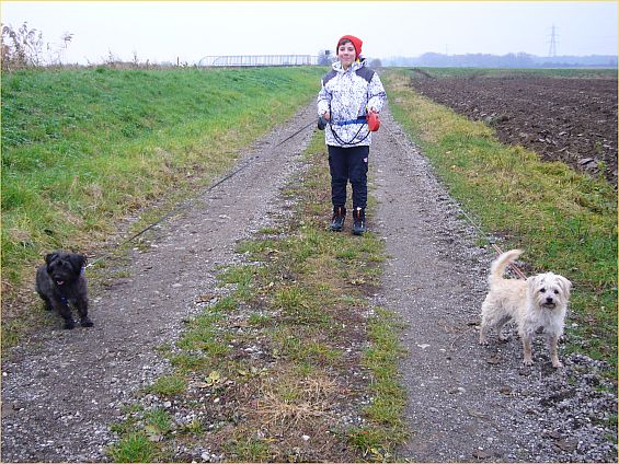 Danach gehen wir Gassi. Dabei führe ich immer einen Hund mit mir an der Leine.