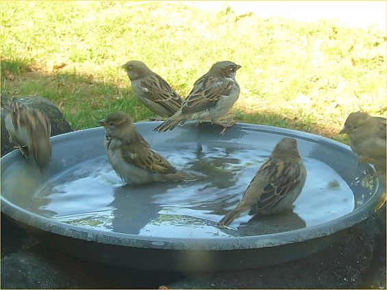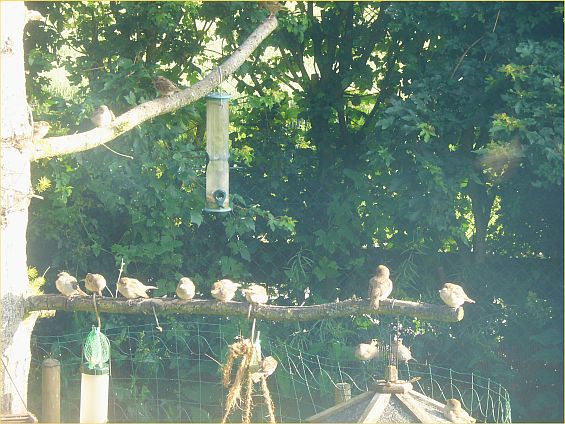 Wenn wir zurückkommen, gehe ich hinter das Haus und verteile das Vogelfutter in die Vogelhäuschen.