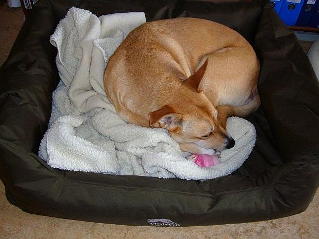 auch ein riesen Hundebett war dabei, das natürlich sofort dankbar angenommen wurde :-))
