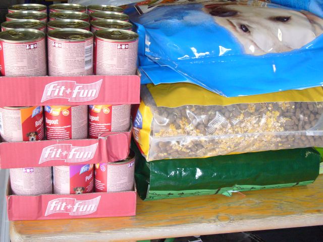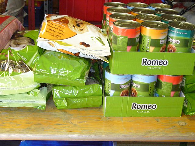 Es wurde wieder viel gespendet, Hunde-und Katzenfutter, Katzenkörbe, Hundekörbe, warme Decken, Meerschweinchenfutter, uvm. Wir haben das Futter aufgeteilt an verschiedene Auffangstationen in Frankreich und Italien. Ein Teil der Kissen und Körbe ging nach Italien, ein Teil der warmen Decken geht nach Rumänien.