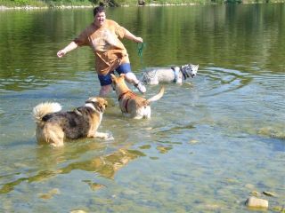 Für Brava war der Abschied von den Welpen nicht so leicht, vor allem als Popeye und LIA weg waren, war sie traurig, wir mussten Brava bewusst anderweitig beschäftigen. Die Spaziergänge wurden ausgedehnt und wir fuhren öfter weg an neue Orte, und vor allem ans Wasser, das Brava sehr liebt. Ich wurde ins "Fährten" für Hunde eingeführt, von Irene Keil und mache hin und wieder "Nasenarbeit" mit den Hunden, vor allem mit Brava die Powermaus. Abwechslung und eine neue Gruppenzusammenstellung unter den Hunden innerhalb des Hauses sollten Brava zur Neuorientierung helfen. Was das Ganze im Moment etwas erschwert, sie macht uns im oberen Wohnbereich sehr oft rein. Auch auf`s Bett, Hundedecken usw. (leider nicht nur auf den Fliesenboden) Ansonsten ist Brava ist gut drauf, sehr ausgeglichen und sucht sich nun ihren Platz in der festen Gruppengemeinschaft von Pepsi - Spiky - Manusch. Sie hat wieder einen Prozess in ihrer Entwicklung gemacht und sich etwas verändert.