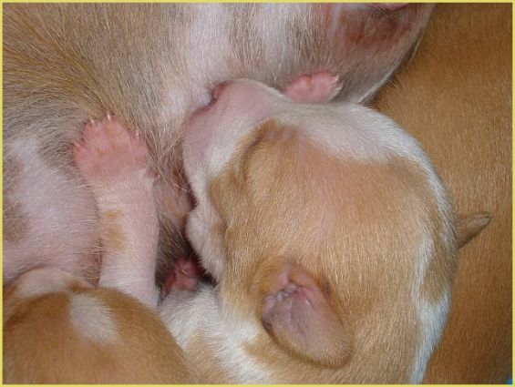 Mama mag nicht mehr soviel hinhalten, es gibt die erste Welpenmilch zugefüttert